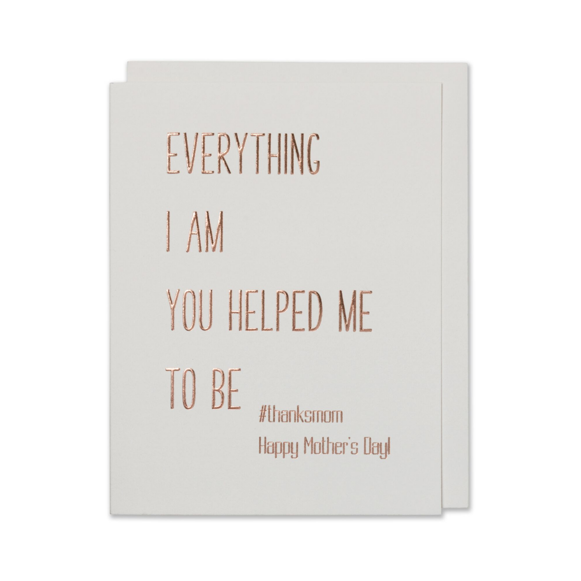 Delight your mom with a card that speaks volumes. Let her know that "Everything I Am, You Helped Me To Be." This card is a token of appreciation for the wonderful woman who has shaped your life.