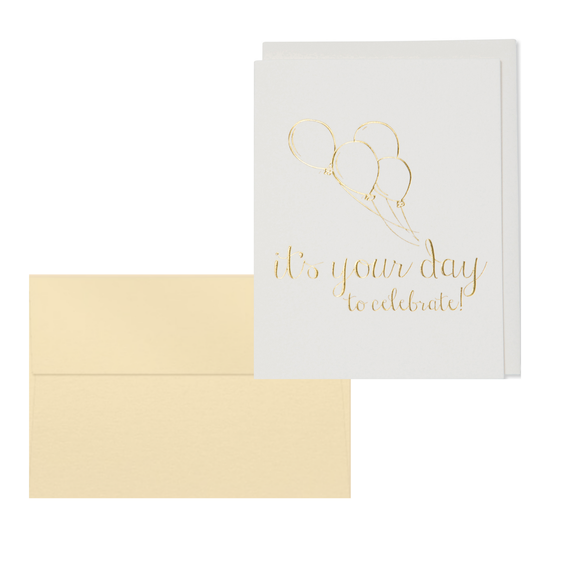 Mark this special day with our Celebrate Card, featuring luxurious gold foil. Treat yourself or a loved one to a stylish and sophisticated way to celebrate and make memories. Make it a day to remember with our exclusive It's Your Day To Celebrate Card.